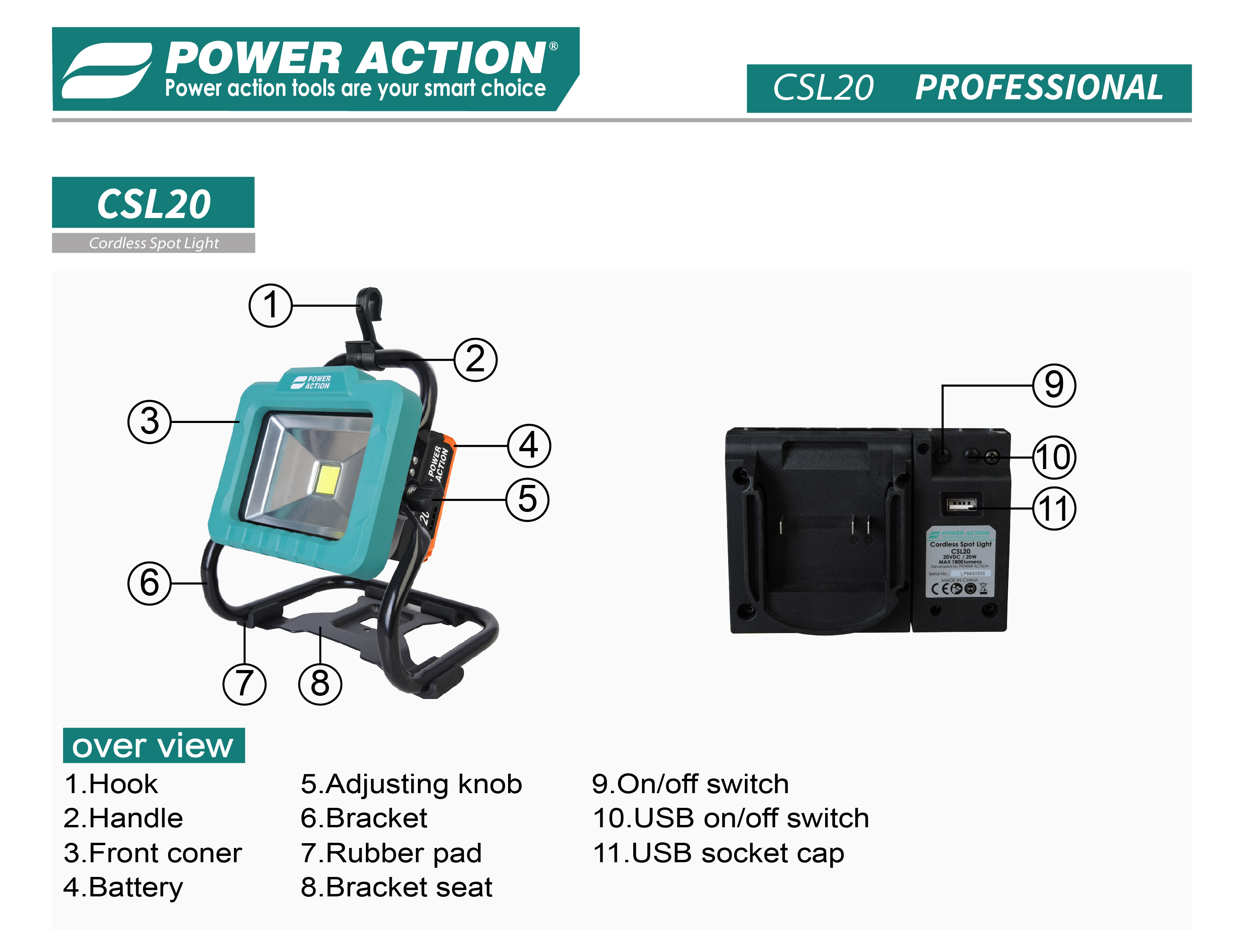 1. The cordless spot working light with 1800LM enhances the brightness of the work light and the life of the light.